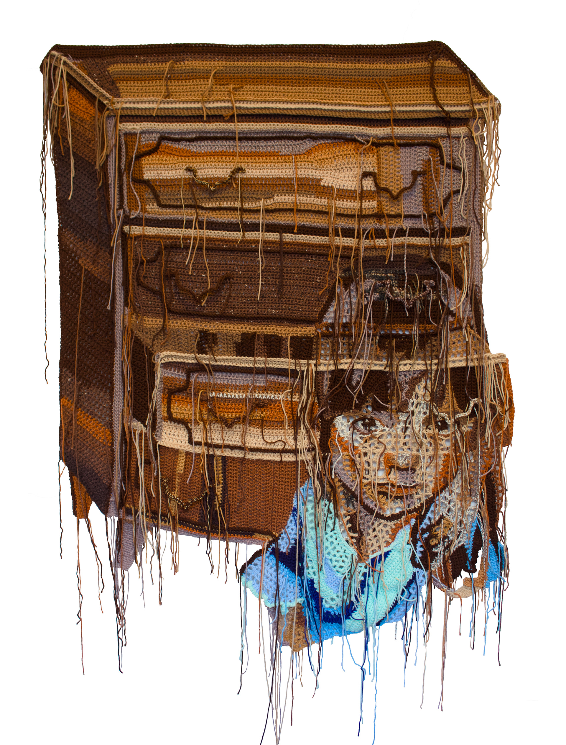 Crochet is a series of units: stitches that make up rows, rows that make up shapes, and shapes that make up both image and object. It echoes the way memories, relationships, and experiences seem to make up a person; the way rooms make up a house; and the way individuals make up a family. I use yarn to build shapes stitch by stitch, crafting an image to interpret the emotional memory of the space we inhabited as a unit.